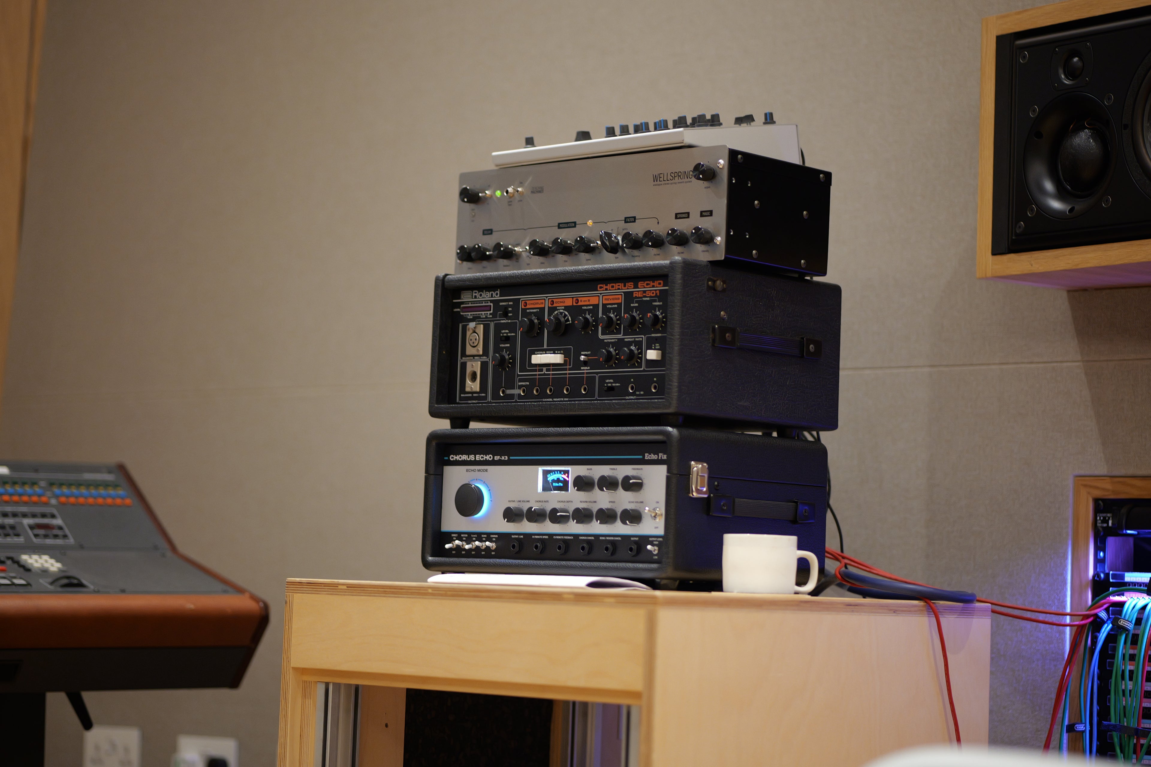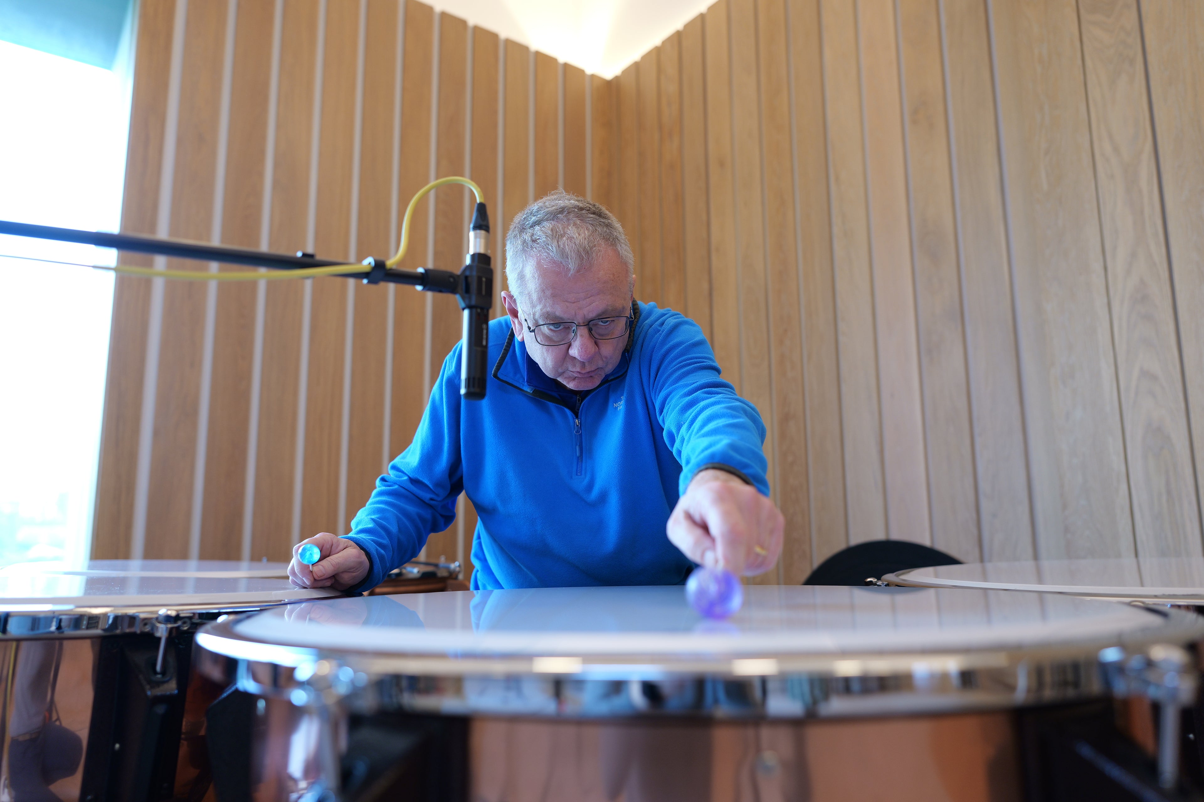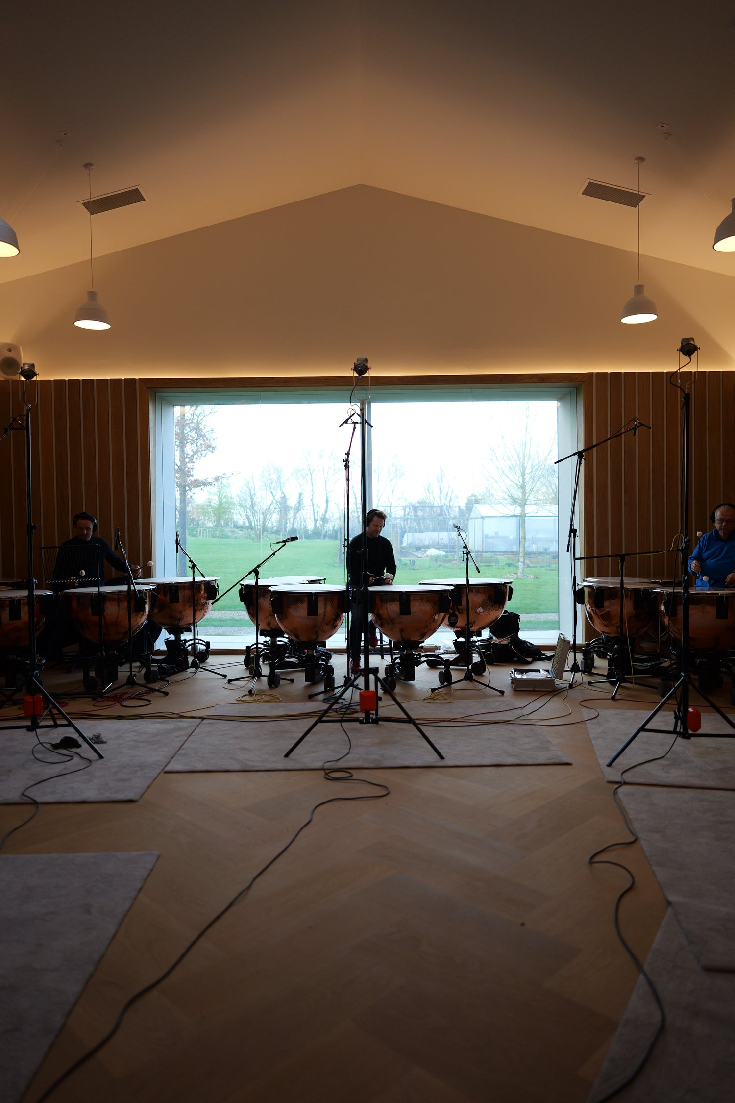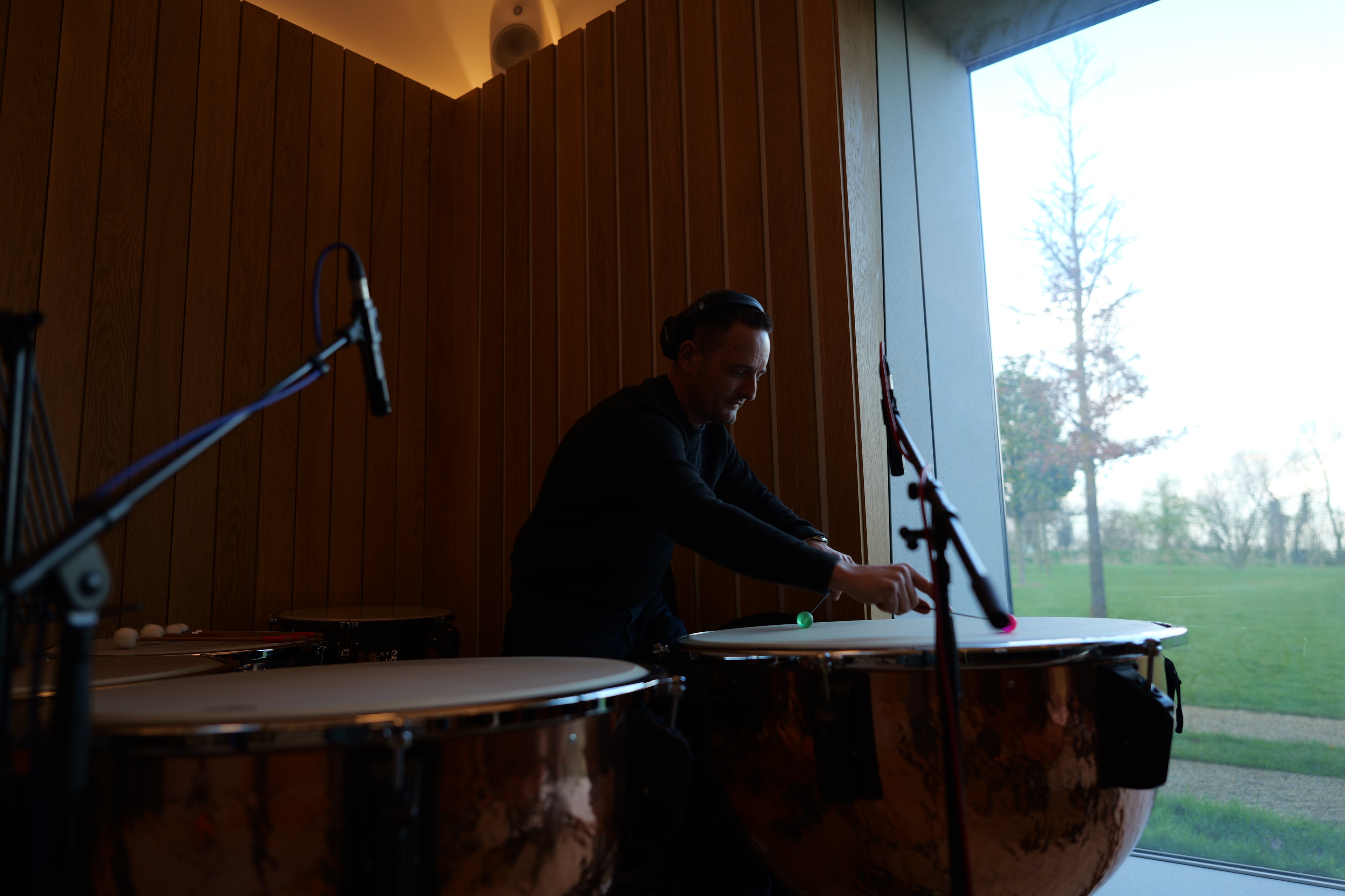 Drones - created by processing the timpani recordings using a variety of outboard gear which included analogue tape delays, analogue filters, analogue pre amps and granular synthesis.